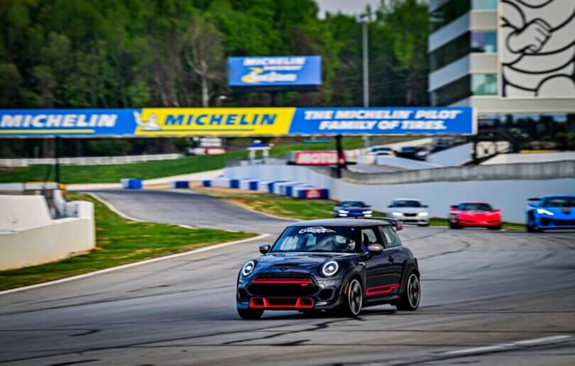 Drive the fastest Mini Cooper ever made! the GP3! 350 horsepower and 360 ftlbs of torque. It has been upgraded with racing brake pads, high temp brake fluid, trackday tires, racing downpipe and performance exhaust! Scrub slicks available as option.